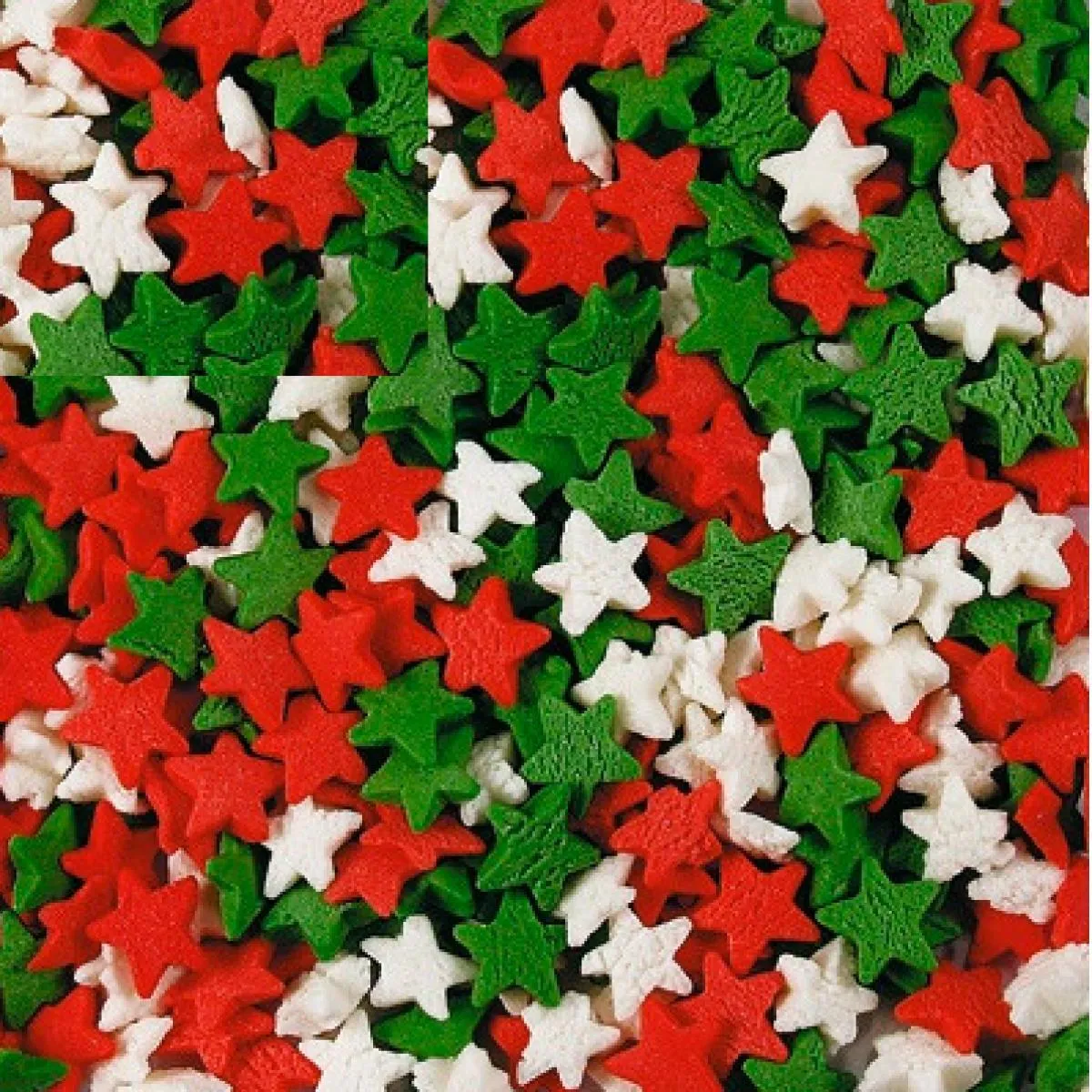 Посыпка сахарная Звезды красные,белые,зеленые, 50гр.